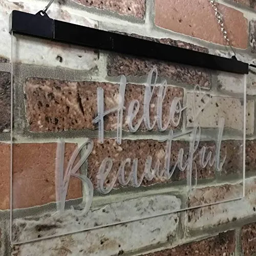 These LED lights are designed to offer both style and function, with a variety of sizes and colors to perfectly match your unique space or business. Our 3D-engraved signs are built to last, featuring energy-efficient LED technology that provides a long-lasting and cost-effective lighting solution. Whether you’re enhancing your home, office, or business, these lights create a captivating atmosphere that grabs attention. This design features the words hello beautiful in a cute font with an added heart.