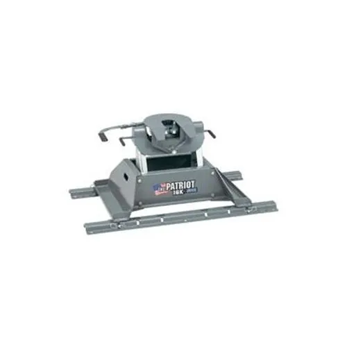 Patriot’s wrap around jaws fit king pins perfectly for a securely smooth tow. Featuring a full 18″ of height for bed clearance, self leveling coupler, easy to reach effortless handle and a side to side pivot with spring cushioning for easy install and use, the Patriot has all the quality features of the Companion at a price that?s hard to resist. Fits all standard mounting rails. 16,000 lbs trailer weight 4,000 lbs vertical weight.