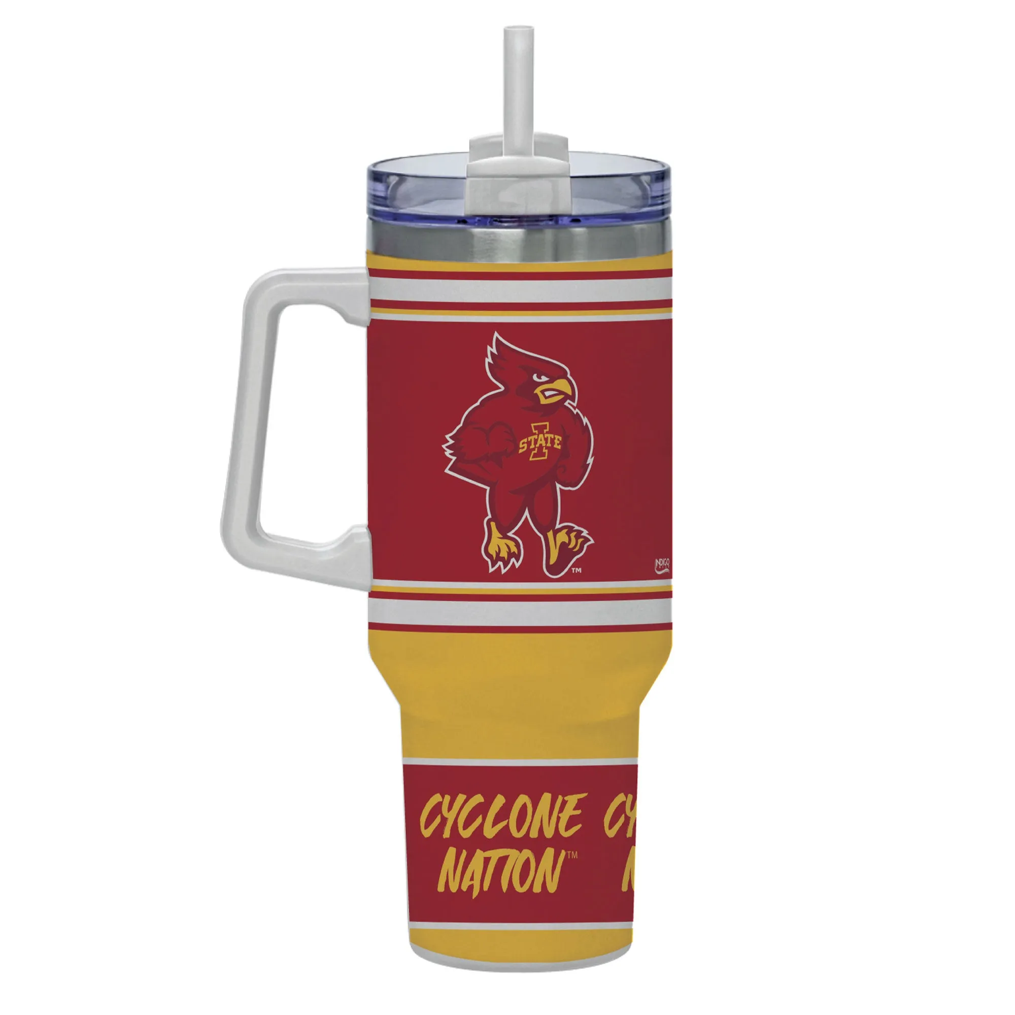 With this incredible tumbler, proudly show off your love for the Iowa State Cyclones. It features a full wrap of graphics from top to bottom, a sizable handle, a lid perfect for sipping or straws, and double wall vacuum insulation to keep your favorite drinks hot or cold for hours on end! Plus, it even comes with a straw included in the box!