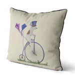An illustration from our ‘Dogs on Penny Farthings’ Collection, this adorable cushion cover features a very cute dog riding a brightly coloured Victorian Penny Farthing Bicycle. A definite hit with dog lovers.