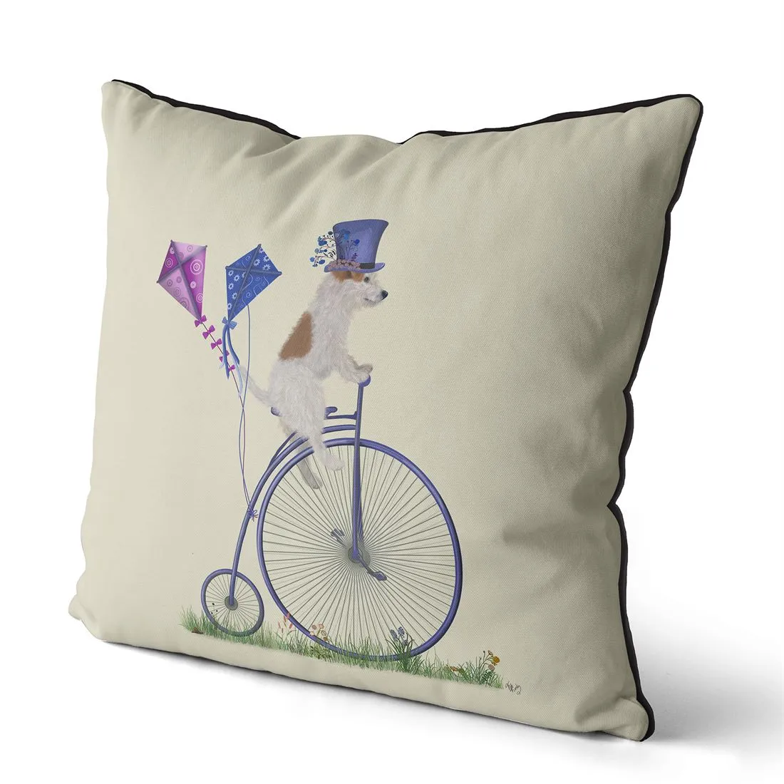 Jack Russell Rough on Penny Farthing, Cushion / Throw Pillow
