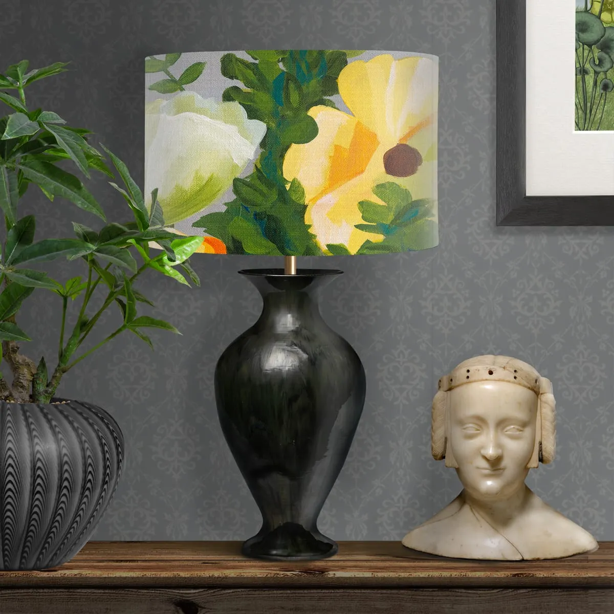 The image on this lampshade is a section taken from my original acrylic painting ‘Jamaica Primrose’. The loose floral style and bright colours make this a very happy and bold statement lampshade, that is unusually adorned with with original art. A beautiful floral display that will add elements of spring and summer to your home year round.