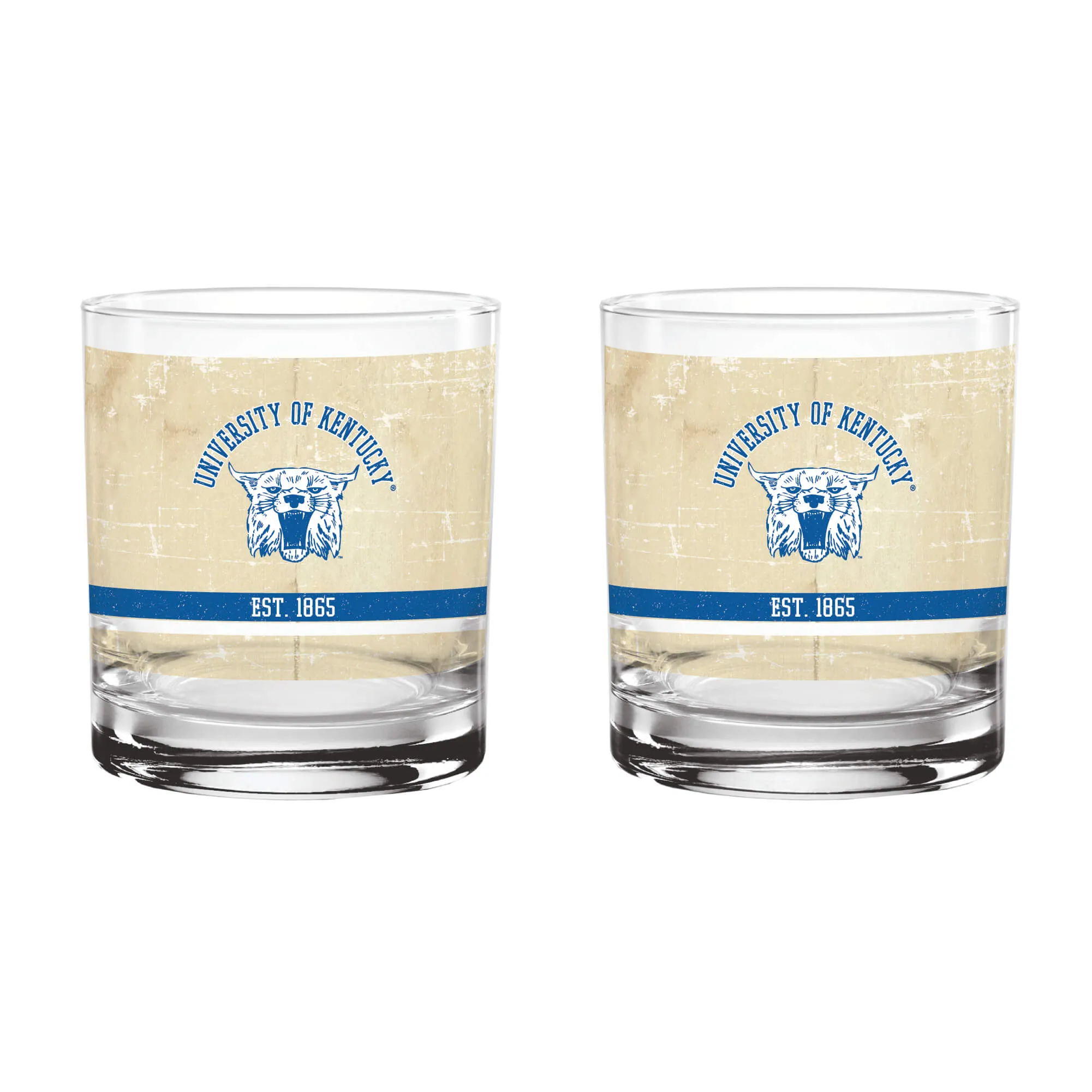 Kentucky Wildcats Set of 2 College Vault Tan Retro 14oz Rocks Glasses