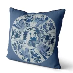 Lady with Mirror on Blue, Chinoiserie Cushion / Throw Pillow