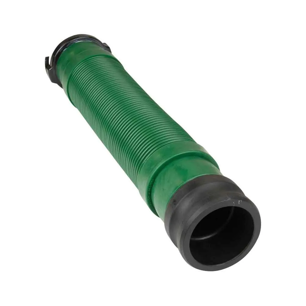 Sewer Hose; Waste Master ™; Portable Tote Tank Adapter; 49 Inch Extended Length; 18 Inch Compressed Length; 4 To 1 Compression Ratio; 3 Inch Diameter; Vinyl; Green; With Hose/ Cam Lock Adapter Fitting and Bayonet Fitting