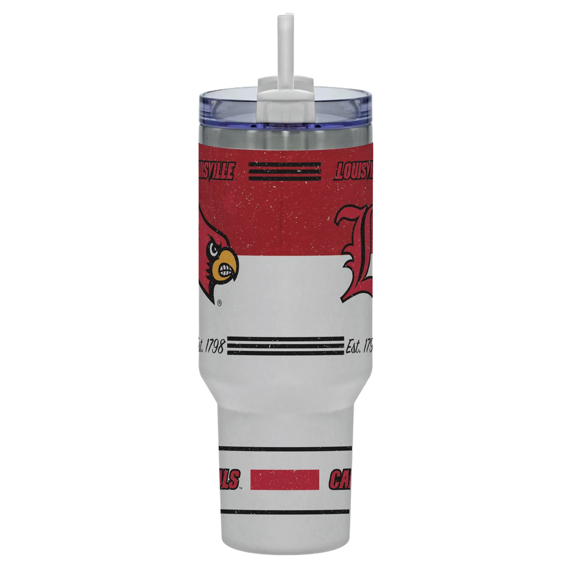 With this incredible tumbler, proudly show off your love for the Louisville Cardinals. It features a full wrap of graphics from top to bottom, a sizable handle, a lid perfect for sipping or straws, and double wall vacuum insulation to keep your favorite drinks hot or cold for hours on end! Plus, it even comes with a straw included in the box!