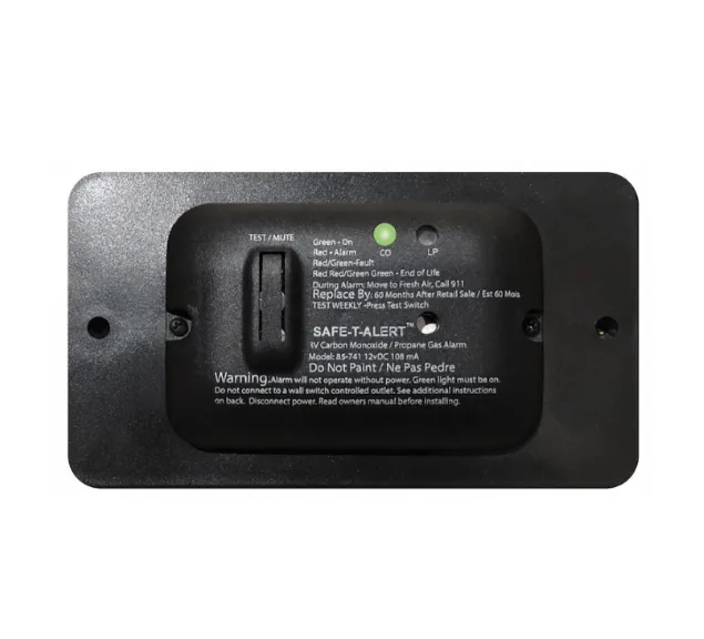 Carbon Monoxide/ Propane Leak Detector; Safe-T-Alert ™; Detects Both LP And CO Gas; Alerts To Leak With Beeping; With LED Indicator; Surface Mount;12 Volt Hardwired; Black; Slim Design; With Trim Ring