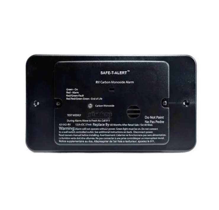 Carbon Monoxide Detector; Safe-T-Alert ™; Flush Mount Detector; Alerts To Leak With Beeping; Without Digital Display; 13.8 Volt DC; Black; 4-1/2 Inch Width x 3-1/4 Inch Height x 1-1/4 Inch Thick; With Trim Ring