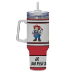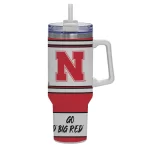 With this incredible tumbler, proudly show off your love for the Nebraska Cornhuskers. It features a full wrap of graphics from top to bottom, a sizable handle, a lid perfect for sipping or straws, and double wall vacuum insulation to keep your favorite drinks hot or cold for hours on end! Plus, it even comes with a straw included in the box!