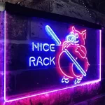 These LED lights are designed to offer both style and function, with a variety of sizes and colors to perfectly match your unique space or business. Our 3D-engraved signs are built to last, featuring energy-efficient LED technology that provides a long-lasting and cost-effective lighting solution. Whether you’re enhancing your home, office, or business, these lights create a captivating atmosphere that grabs attention. Create the environment that will have everyone remembering the great time they had by choosing from a variety of sizes and colors. This design features a pig holding a pool stick with the words nice rack.
