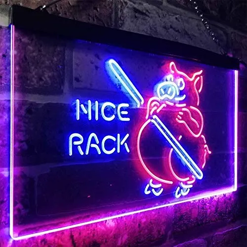 Illuminate your space with our sleek, modern Nice Rack BBQ Pig Pool Billiards LED Light Sign that combines vibrant, eye-catching colors with minimal heat emission. These high-quality LED light displays have become a popular choice for various settings, including bars, man caves, recording studios, home decor, and more. Known for their striking, neon-colored glow, our LED light displays bring a dynamic, energetic vibe to any room.