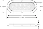 7-1/2″ x 3-1/4″ Oval. Waterproof light serves 4 functions: brake, tail, turn, and backup light. Red lens is set inside of clear lens. Mounts on surface of trailer with built-in flange – hardware not included. 4-Wire pigtail. 16 Diodes.