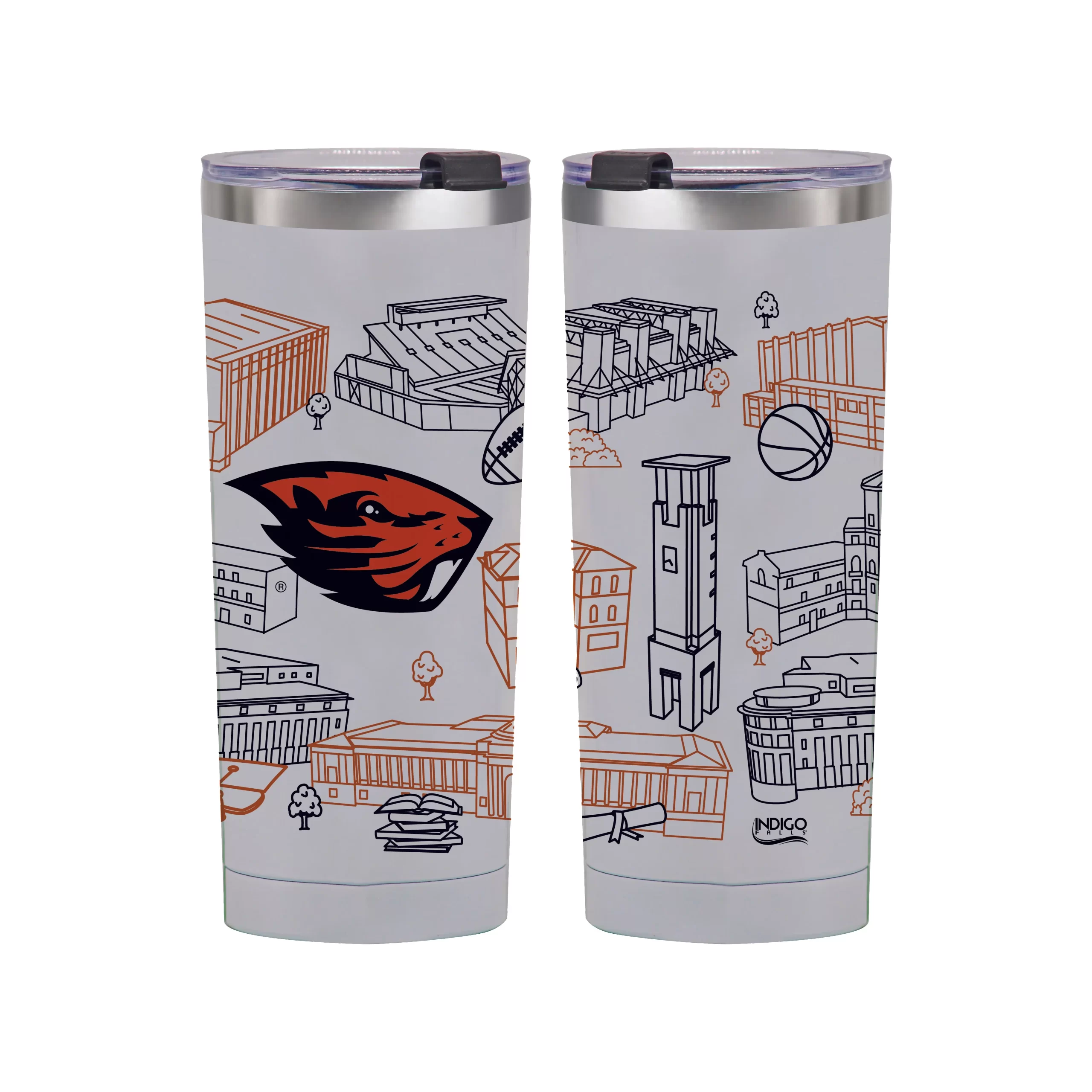 Featuring the beautiful, architectural campus line art from Josh Seubert of Townsville Art, our 24oz tumbler features iconic buildings on campus. If you love the Oregon State Beavers, you’ll love these tumblers!
