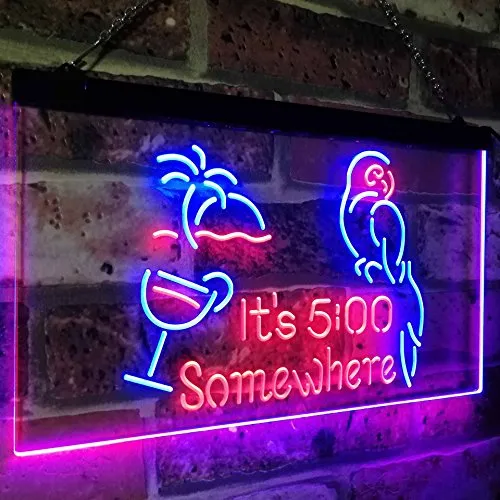Parrot It’s Five O’Clock Somewhere LED Light Sign