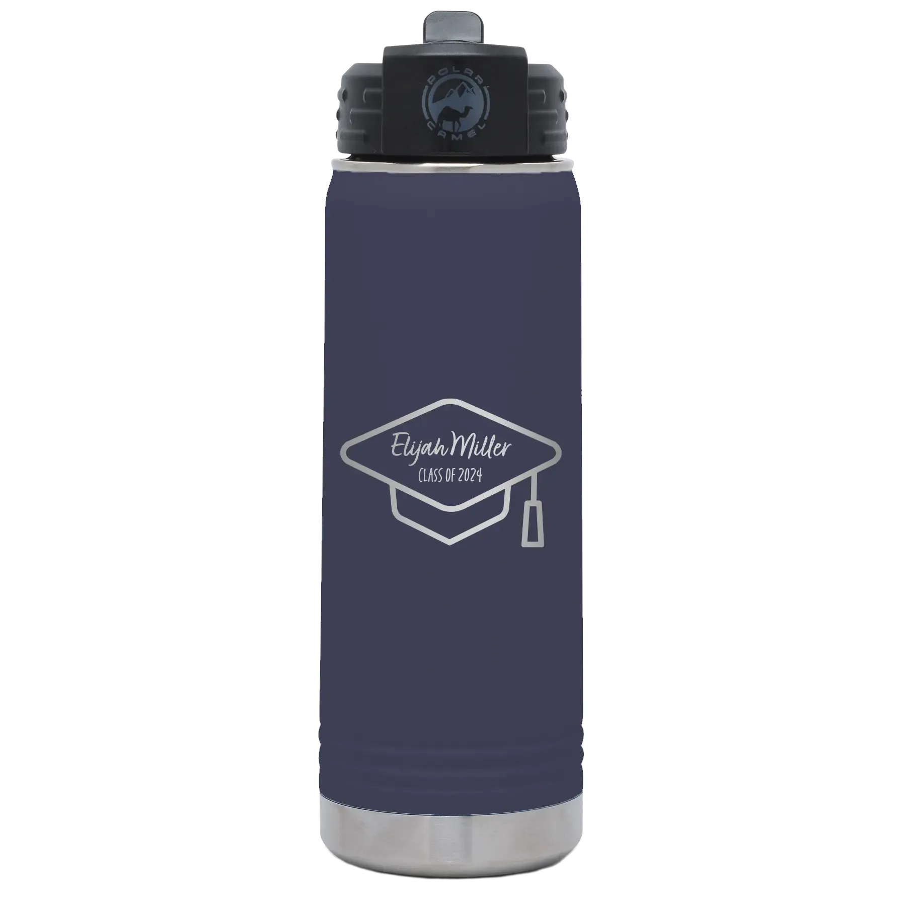 Personalized 2 lines Grad Name and Class 20 oz Water Bottle – Navy