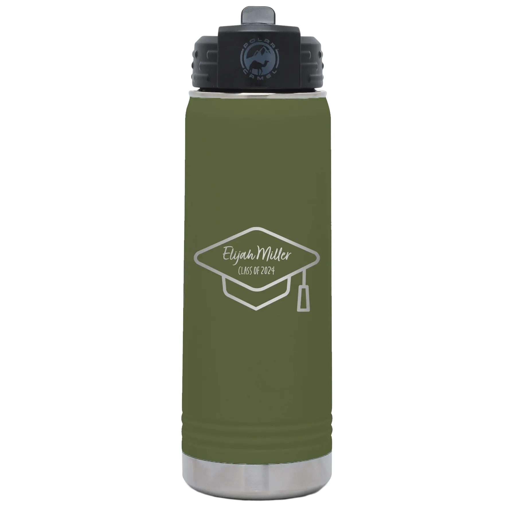 Personalized 2 lines Grad Name and Class 20 oz Water Bottle – Olive Green