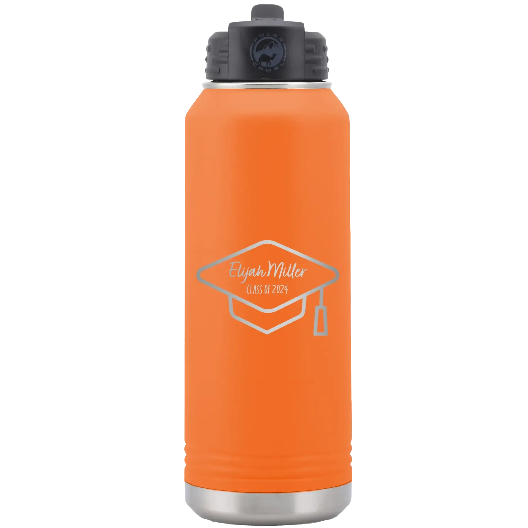 Personalized 2 lines Grad Name and Class 32 oz Water Bottle – Orange