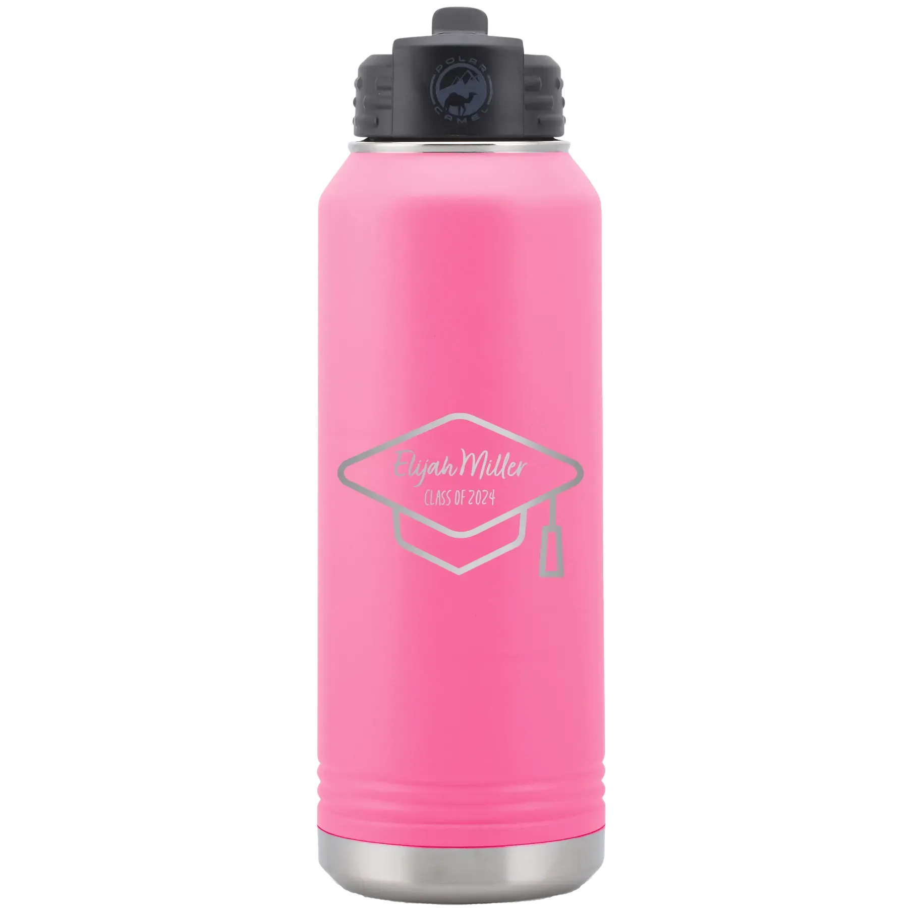 Personalized 2 lines Grad Name and Class 32 oz Water Bottle – Pink