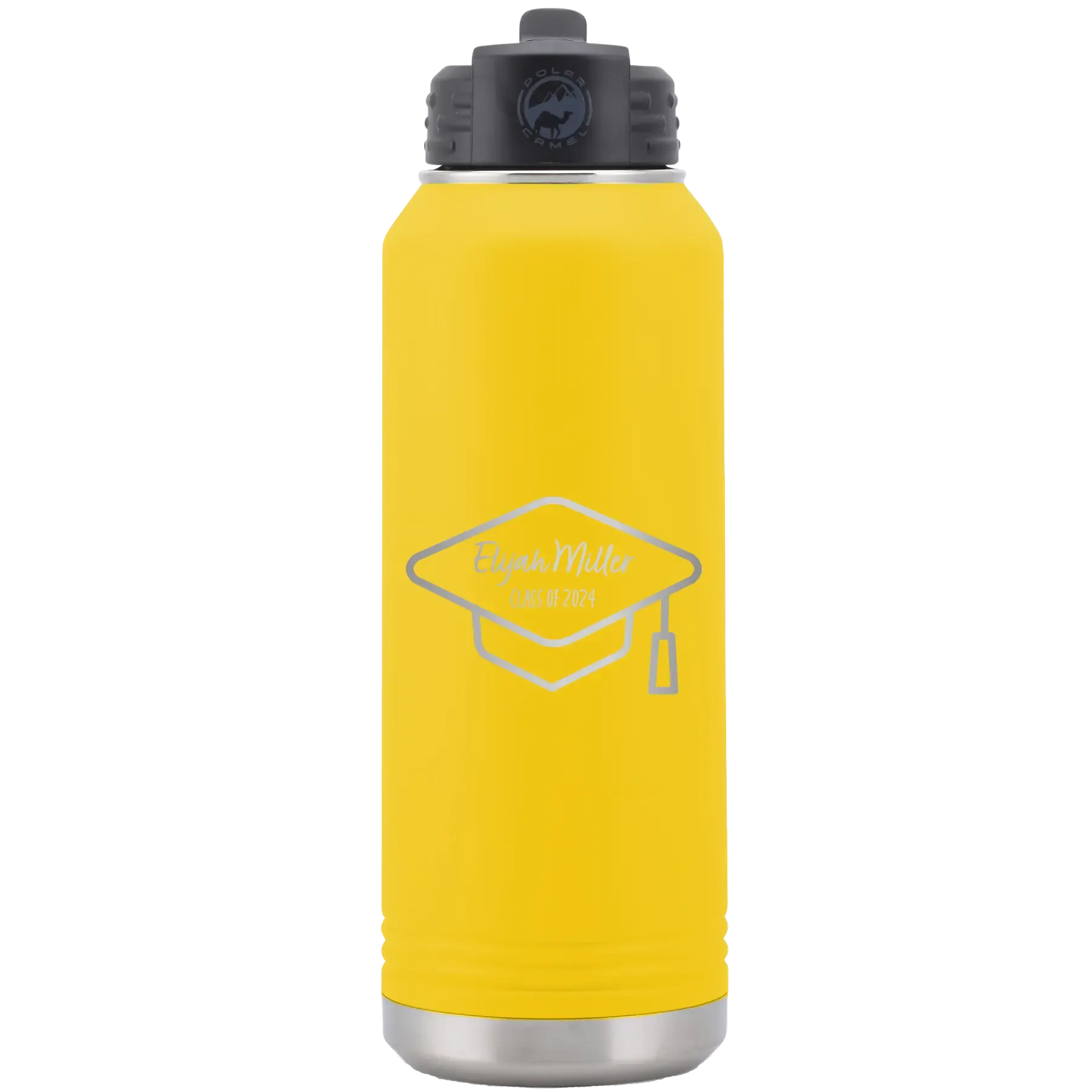 Personalized 2 lines Grad Name and Class 32 oz Water Bottle – Yellow