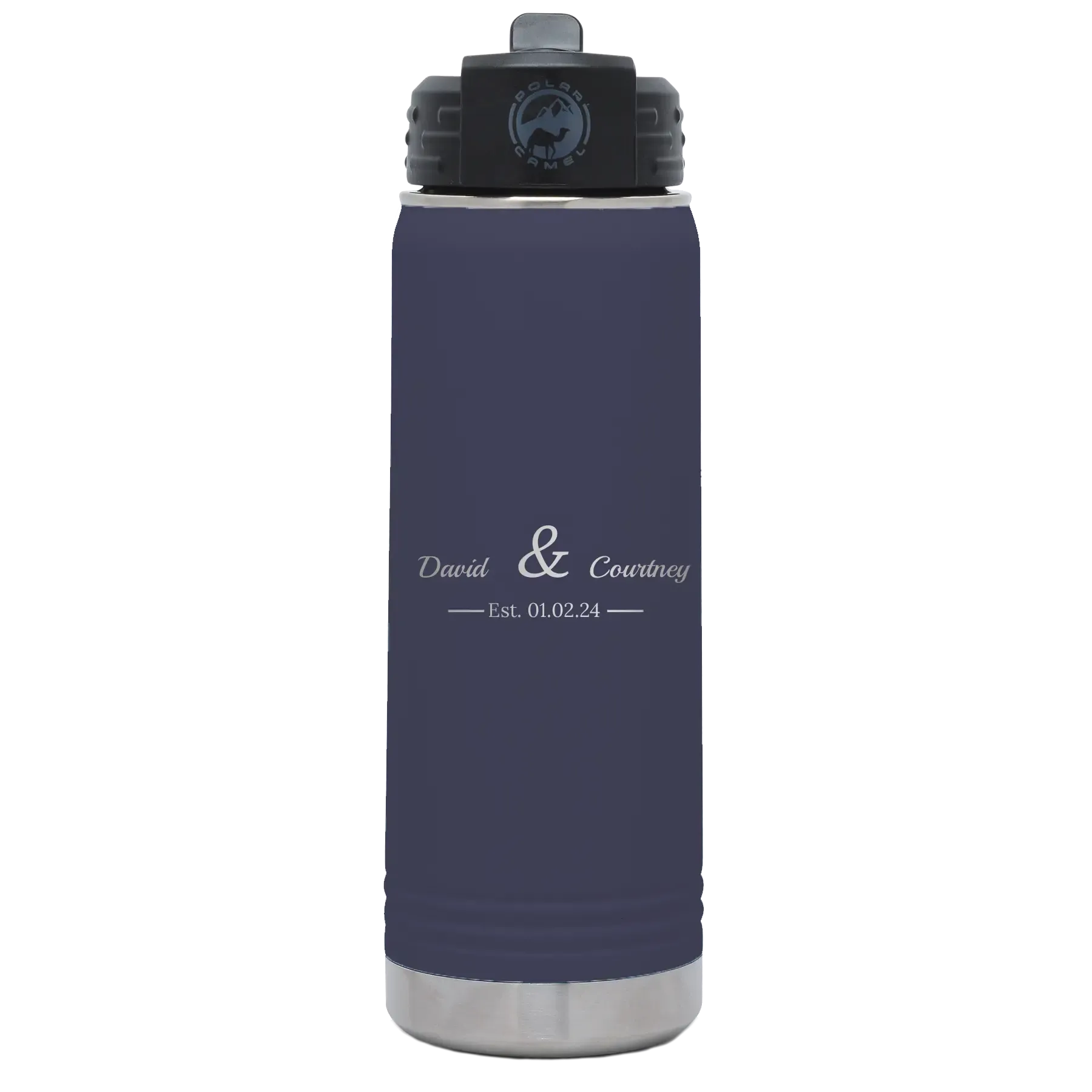 Personalized 2 Lines Name Anniversary 20 oz Water Bottle – Navy