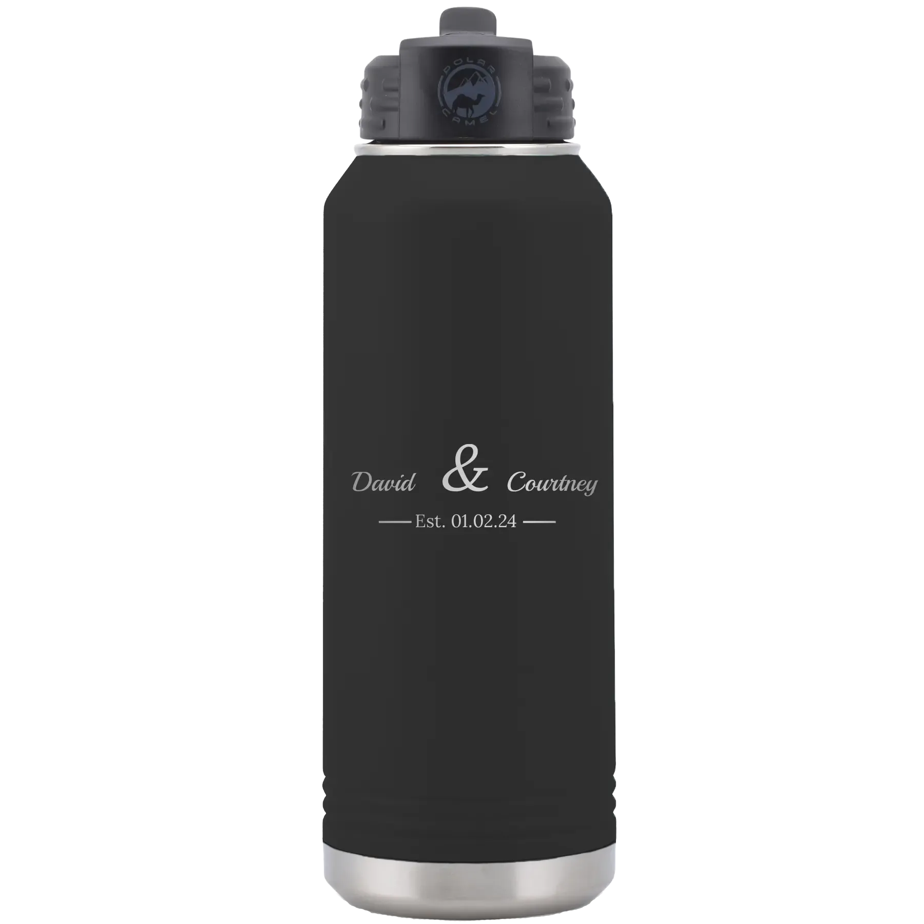 Personalized 2 Lines Name Anniversary 32 oz Water Bottle – Black