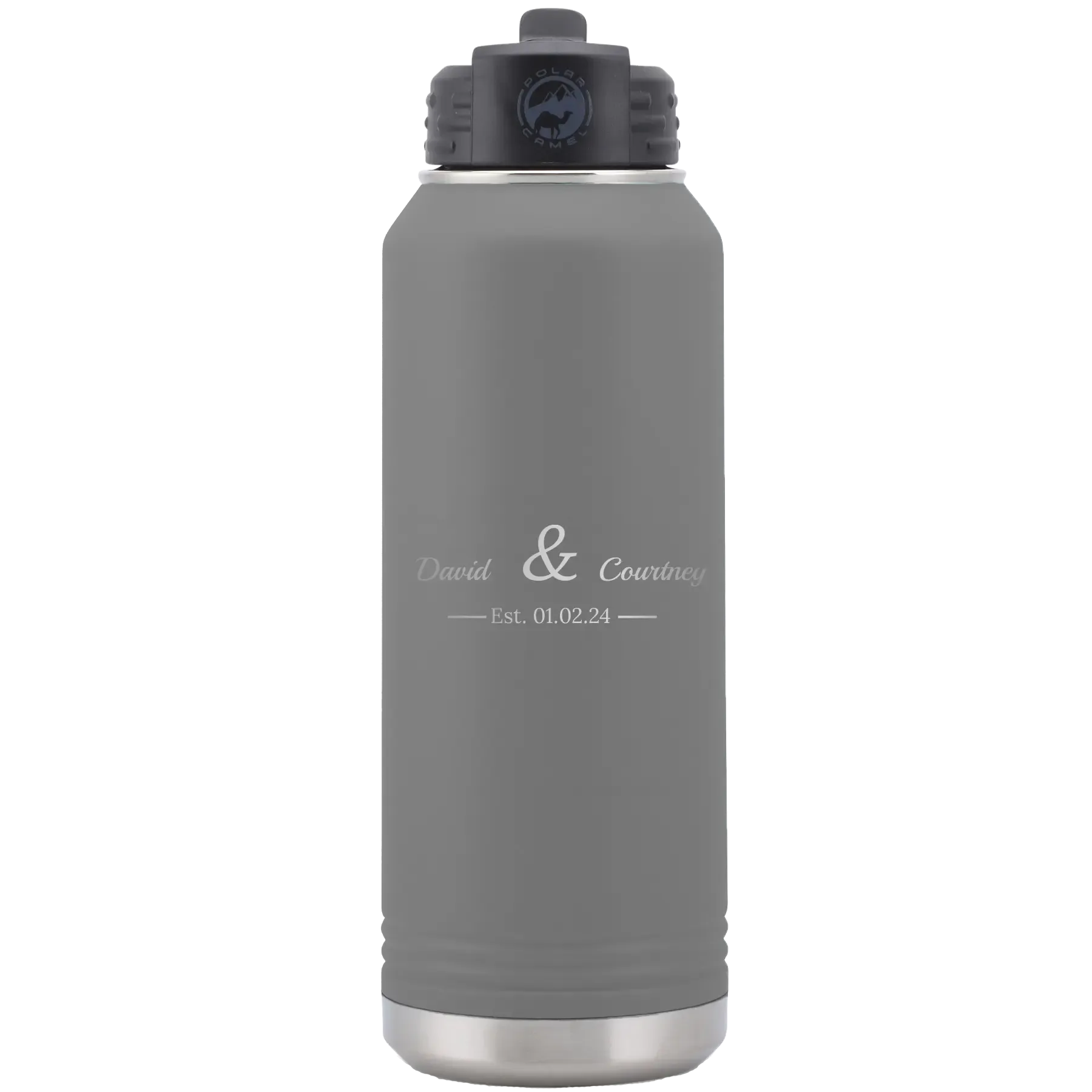 Home » Shop » Personalized 2 Lines Name Anniversary 32 oz Water Bottle – Dark Gray