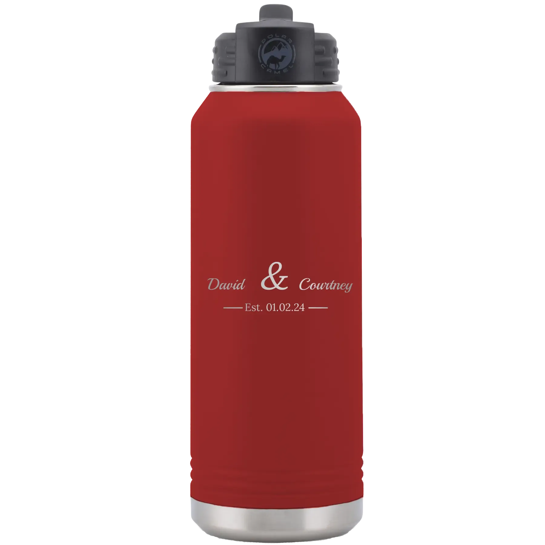 Personalized 2 Lines Name Anniversary 32 oz Water Bottle – Maroon