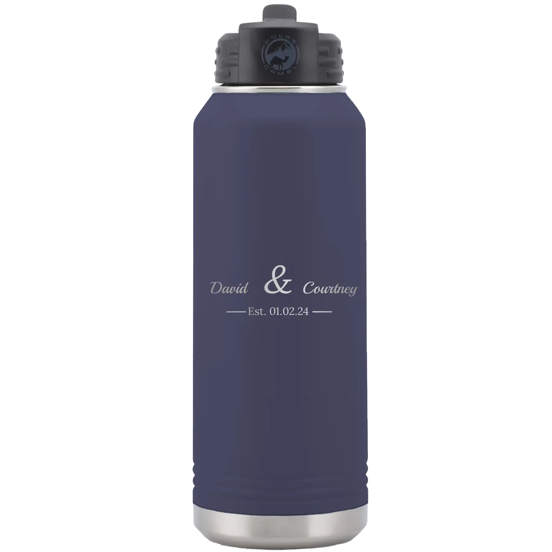 Personalized 2 Lines Name Anniversary 32 oz Water Bottle – Navy