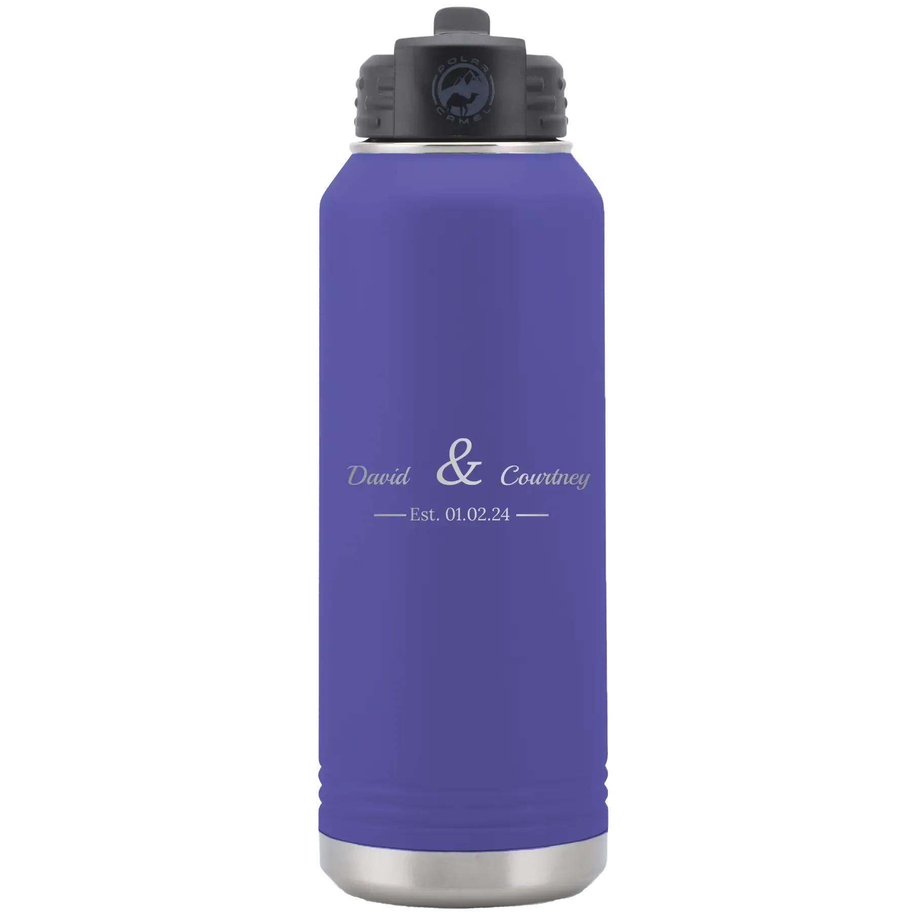 Home » Shop » Personalized 2 Lines Name Anniversary 32 oz Water Bottle – Purple