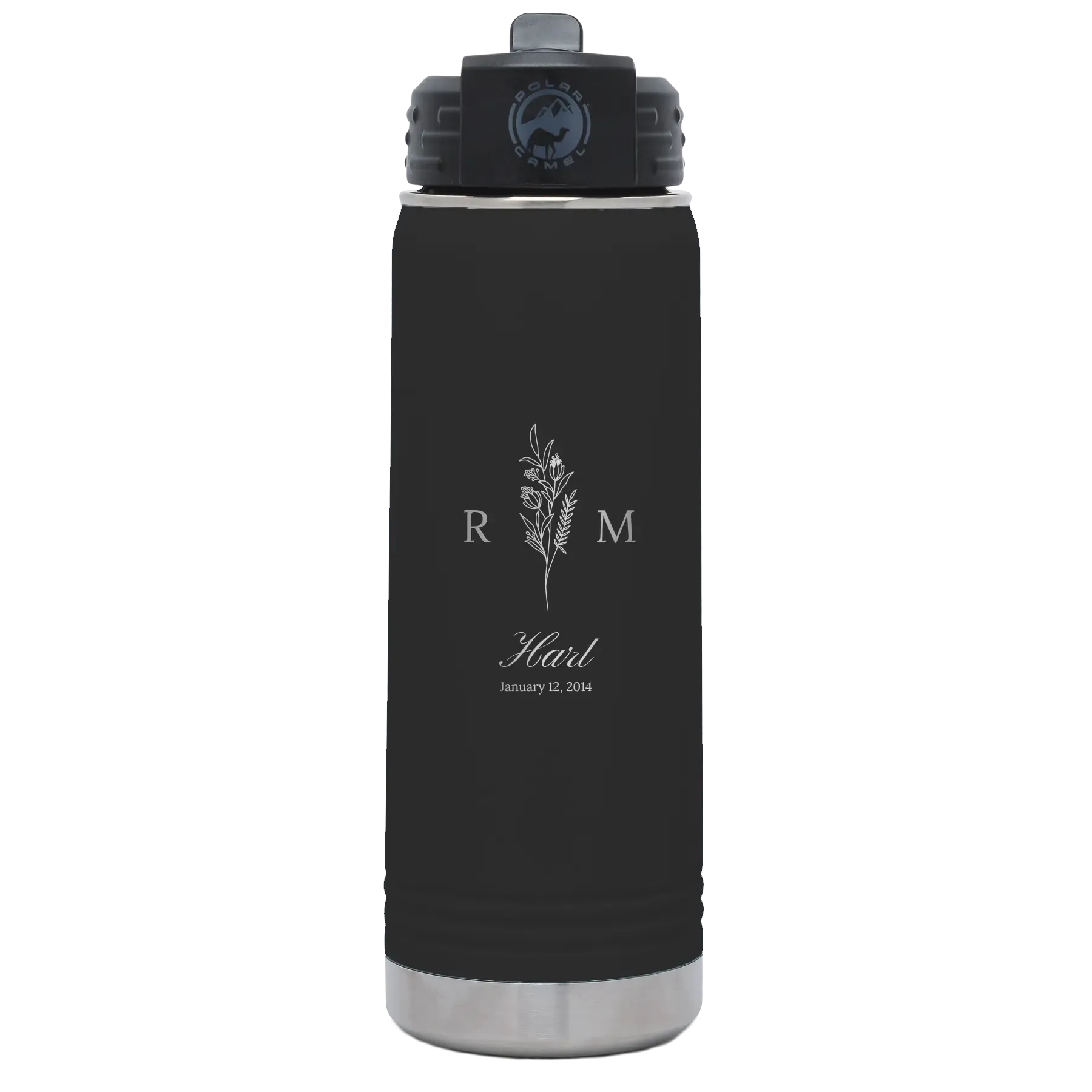 Personalized 3 Lines Initial Last Name Anniversary 20 oz Water Bottle – Black