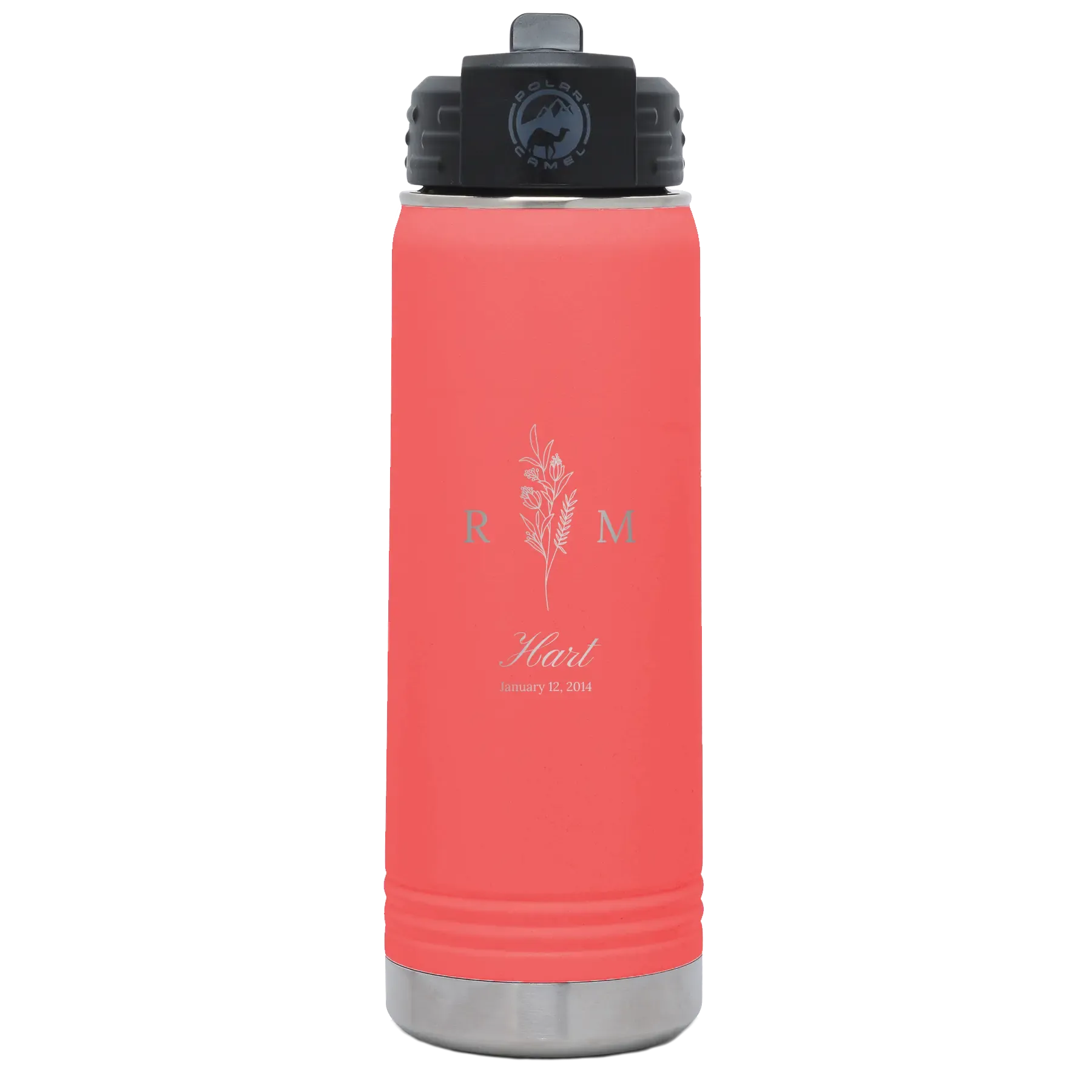 Home » Shop » Personalized 3 Lines Initial Last Name Anniversary 20 oz Water Bottle – Coral