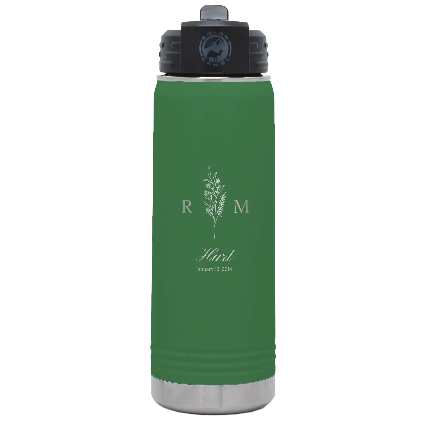 Personalized 3 Lines Initial Last Name Anniversary 20 oz Water Bottle – Green
