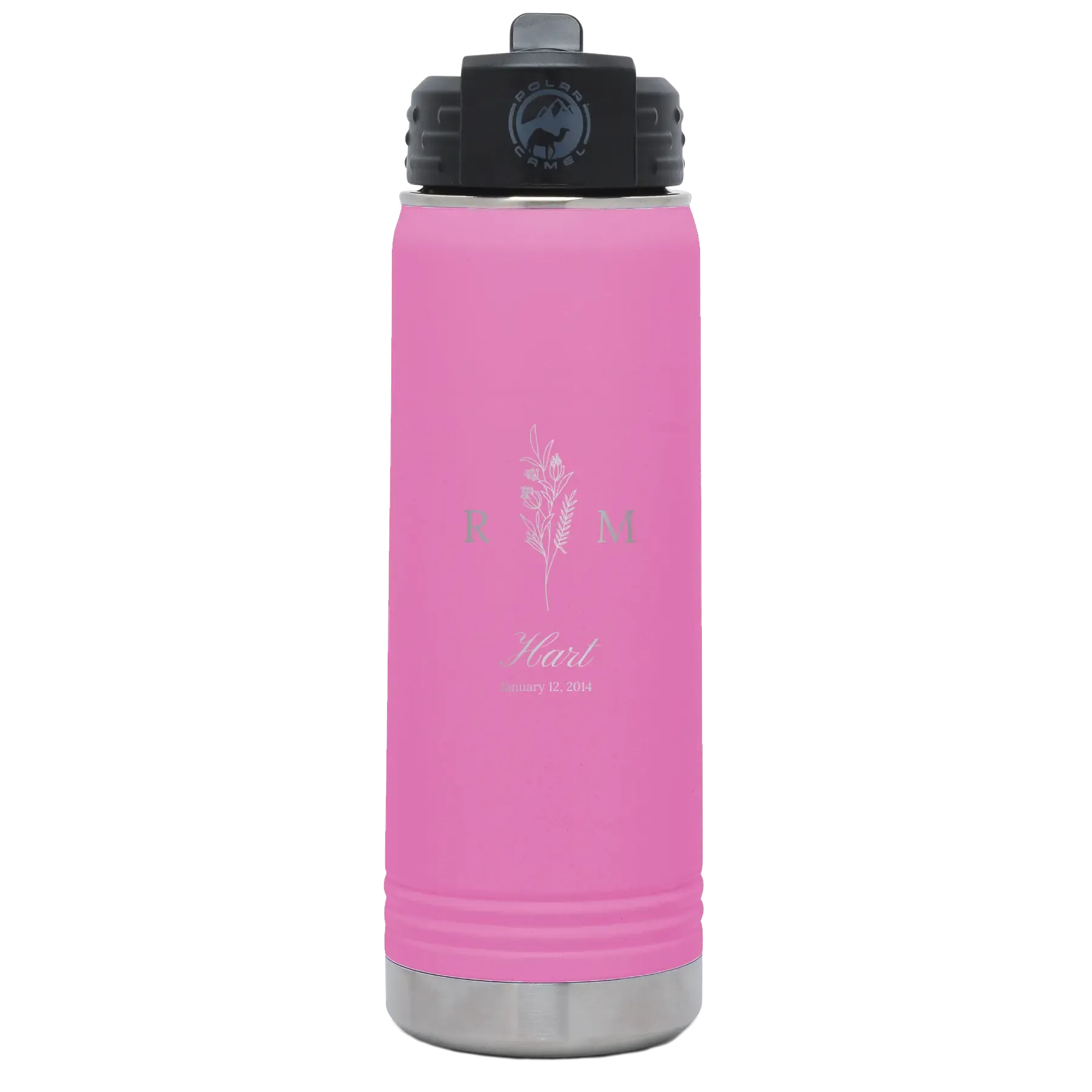 Personalized 3 Lines Initial Last Name Anniversary 20 oz Water Bottle – Light Purple