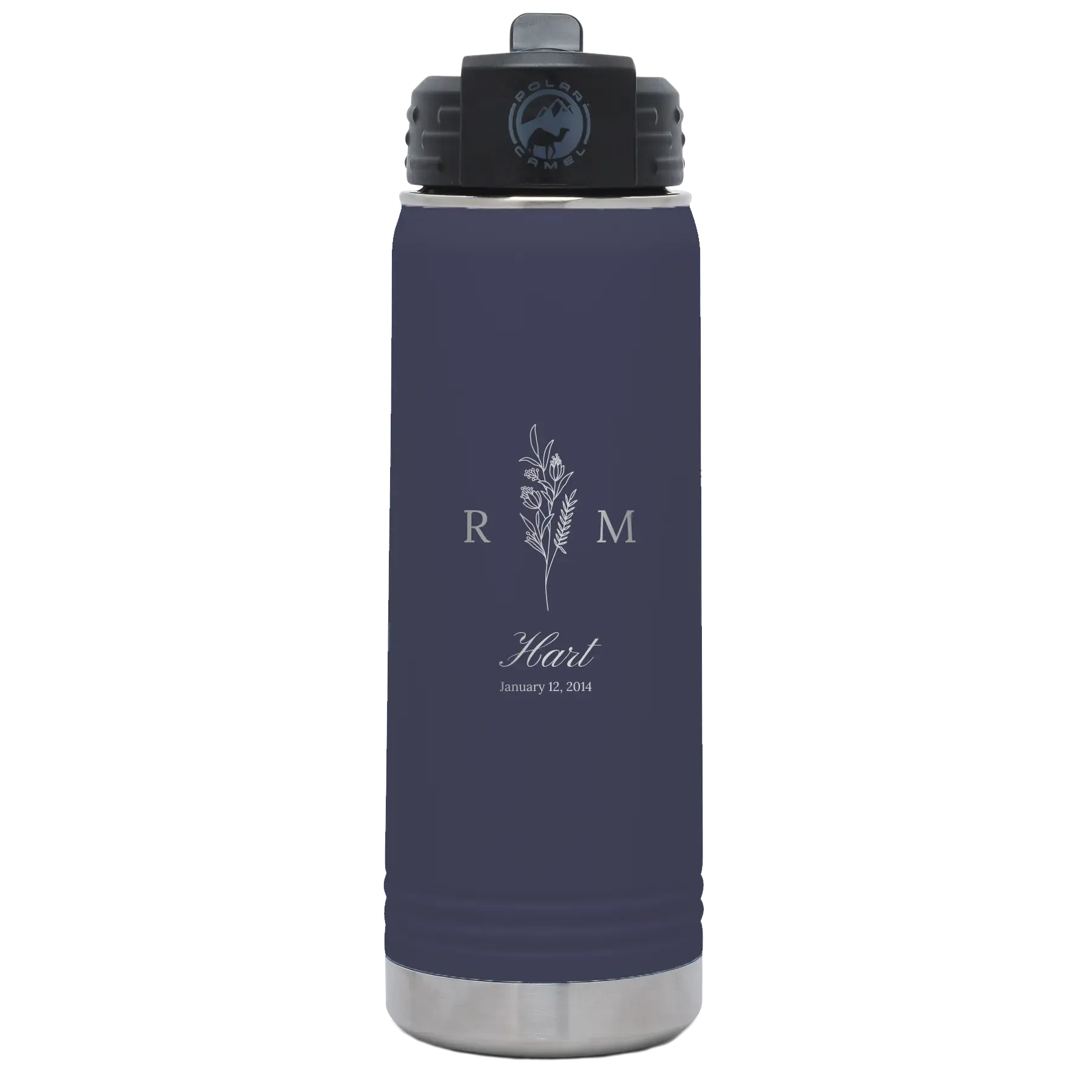 Personalized 3 Lines Initial Last Name Anniversary 20 oz Water Bottle – Navy