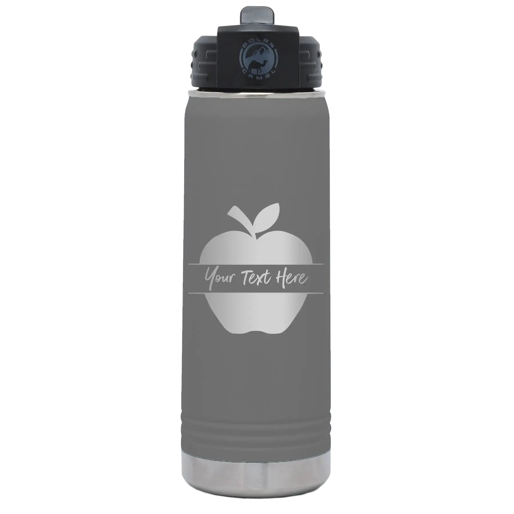 Personalized Apple 20 oz Water Bottle – Dark Gray