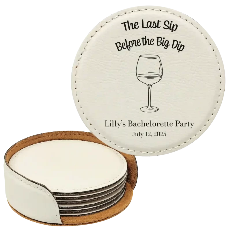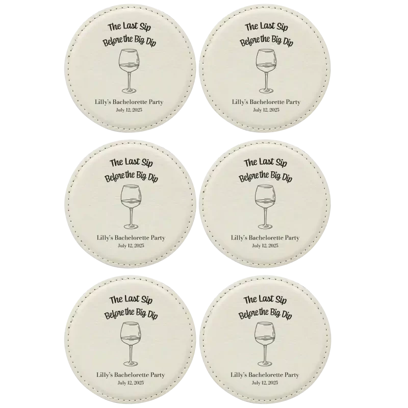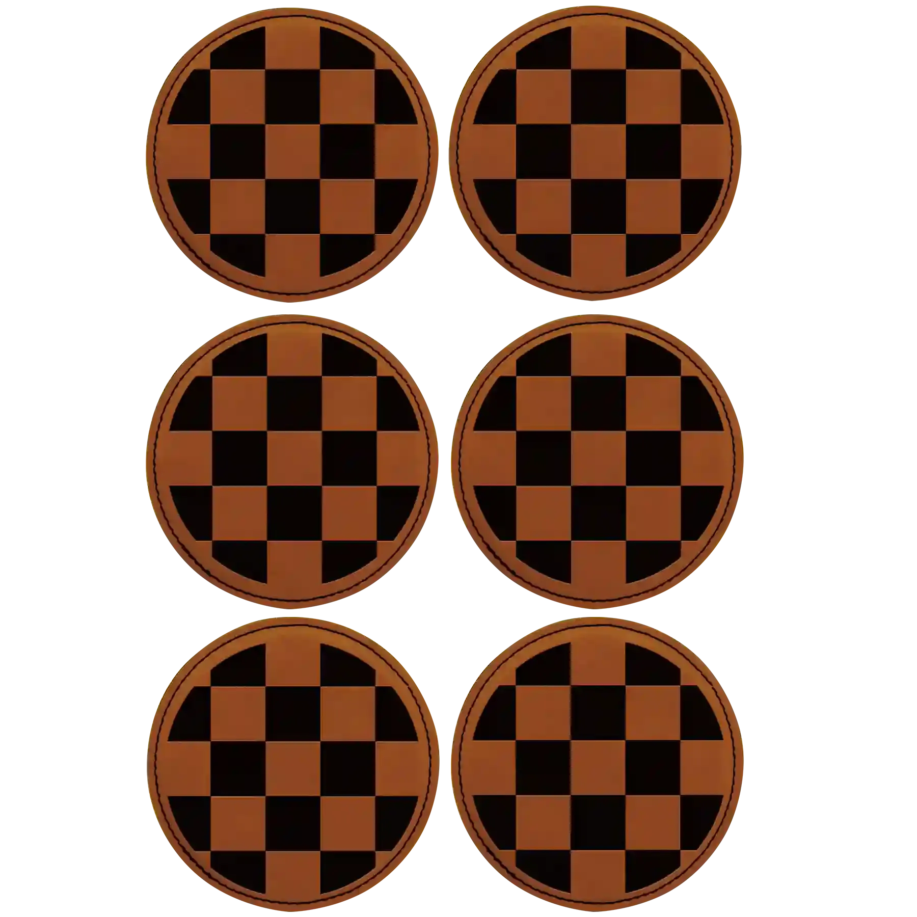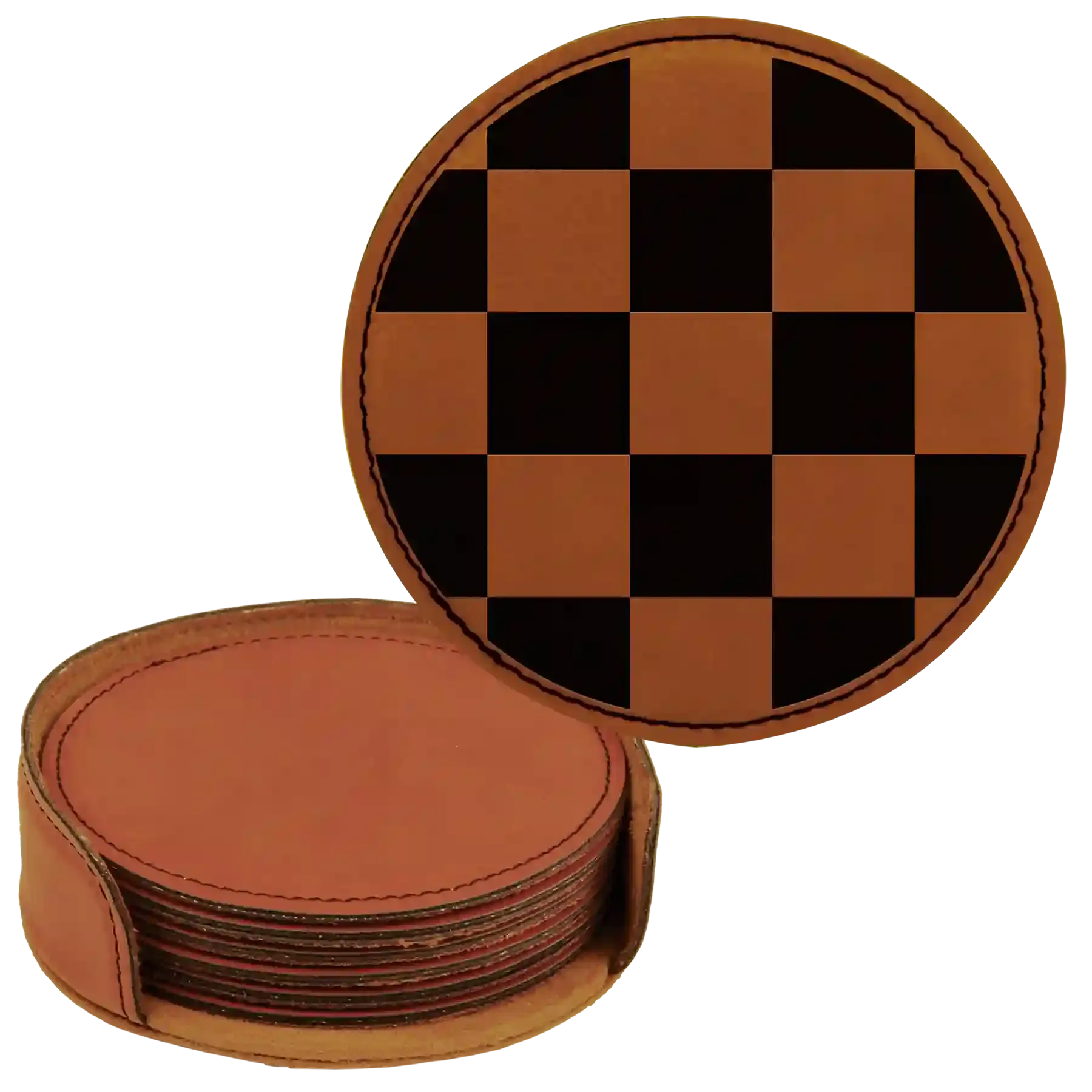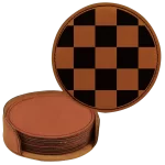 Personalized Checkered Round Leatherette Coasters Set of 6 – Rawhide