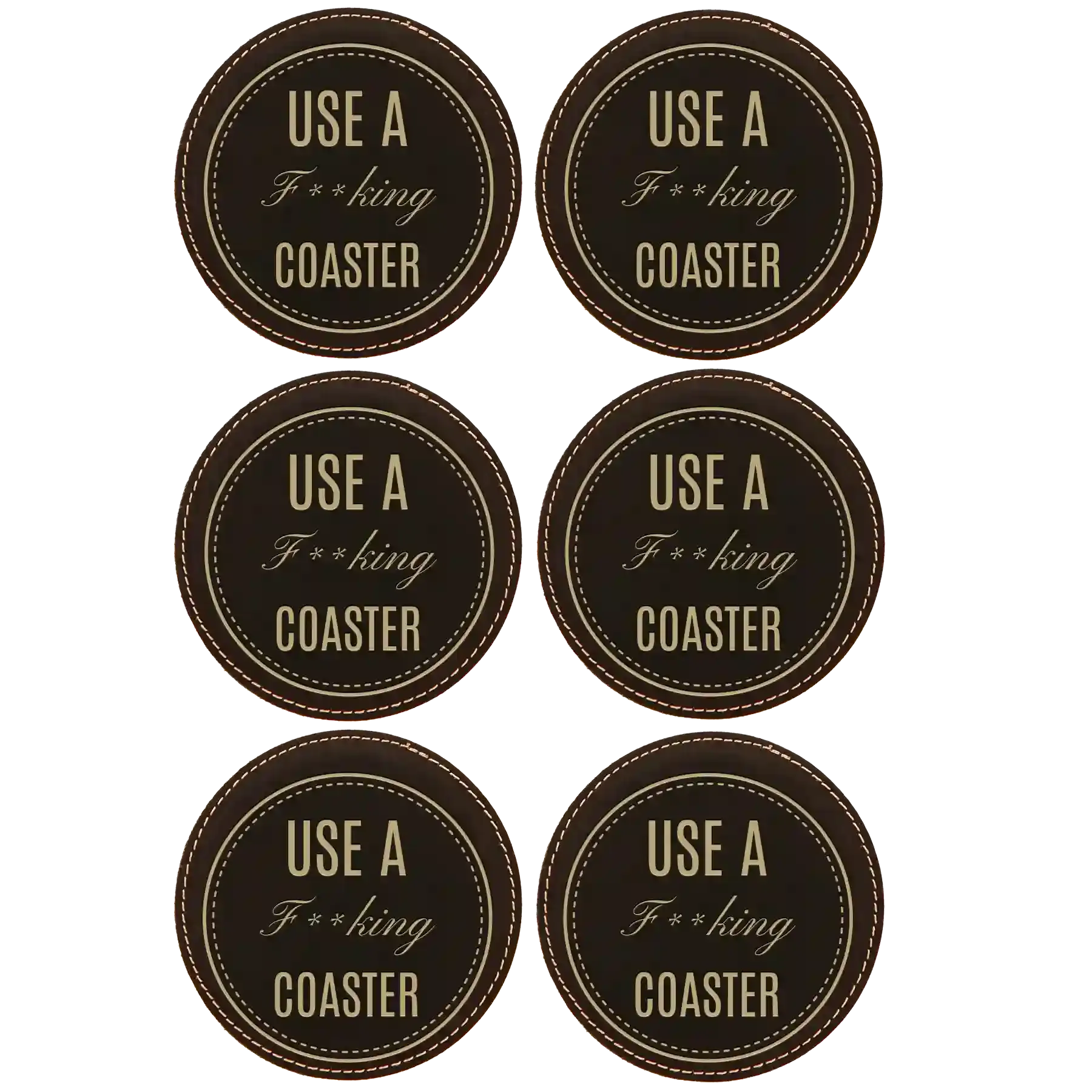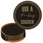 Personalized Fing Coaster Round Leatherette Coasters Set of 6 – Black Gold