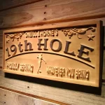 Personalized Golf 19th Hole Bar Man Cave Custom Wood Sign 3D Engraved Wall Plaque