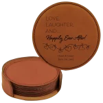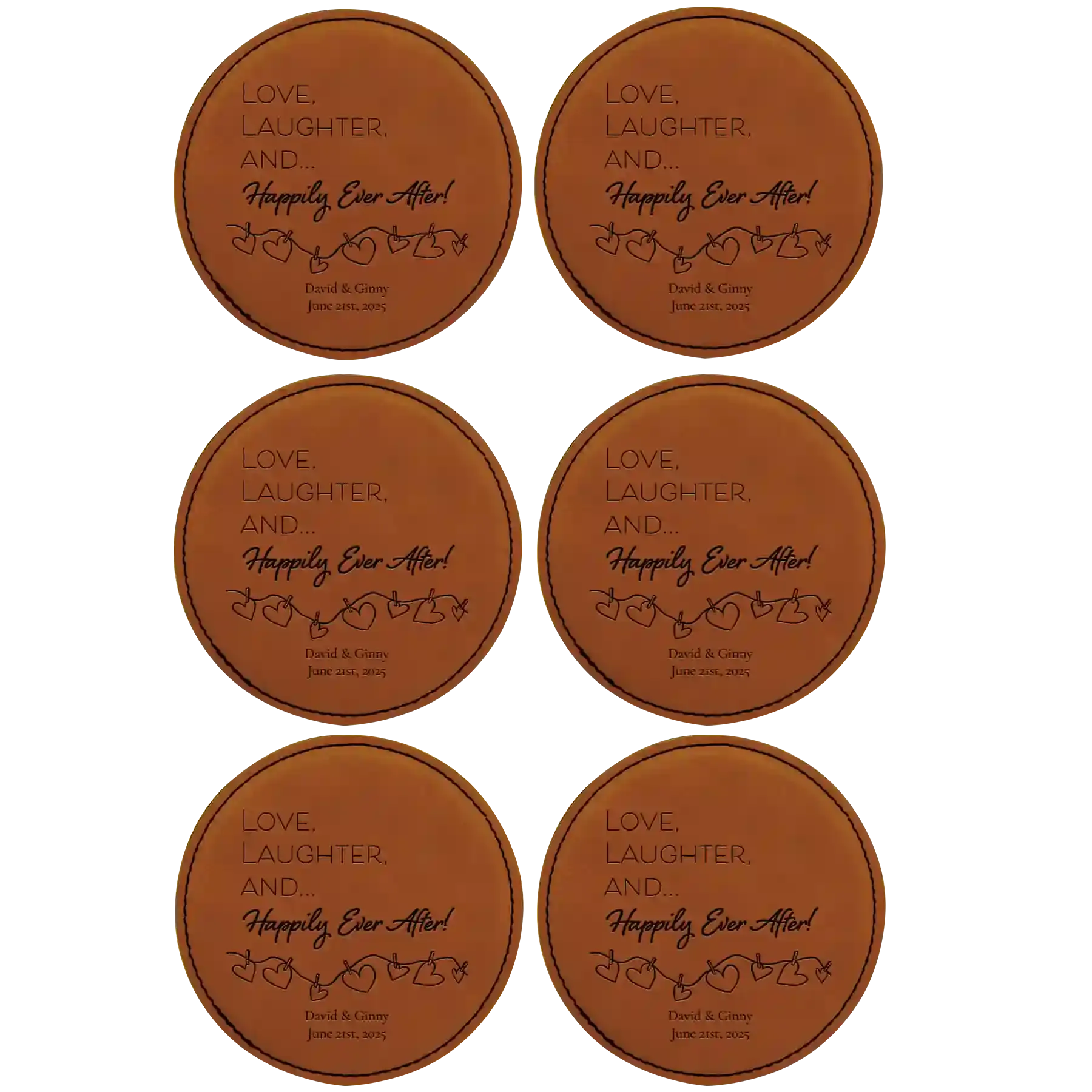 Personalized Happily Ever After Round Leatherette Coasters Set of 6 – Rawhide