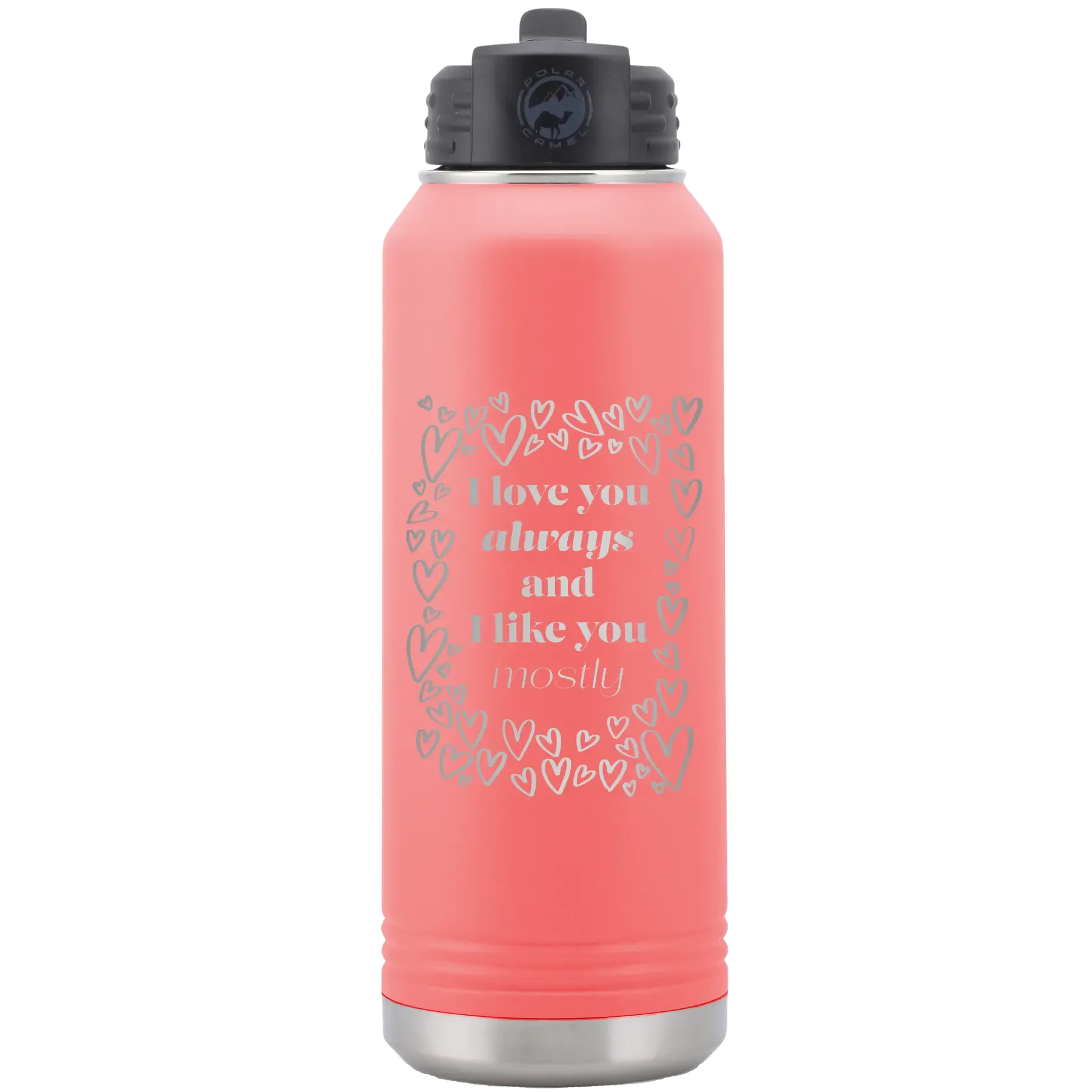 Personalized I Love You Always And Like You Mostly 32 oz Water Bottle – Coral
