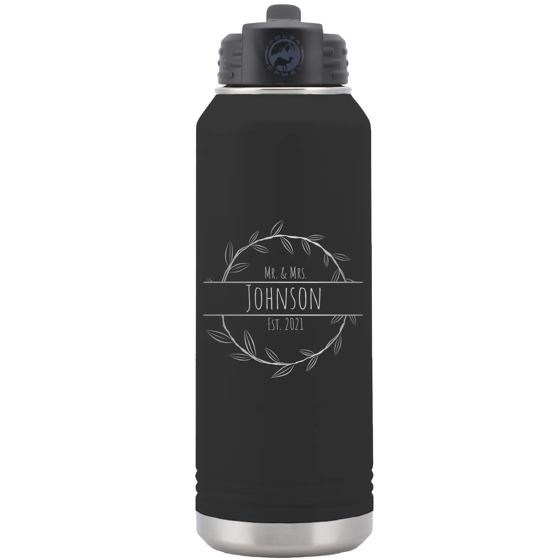 Personalized Last Name and Est 32 oz Water Bottle – Black