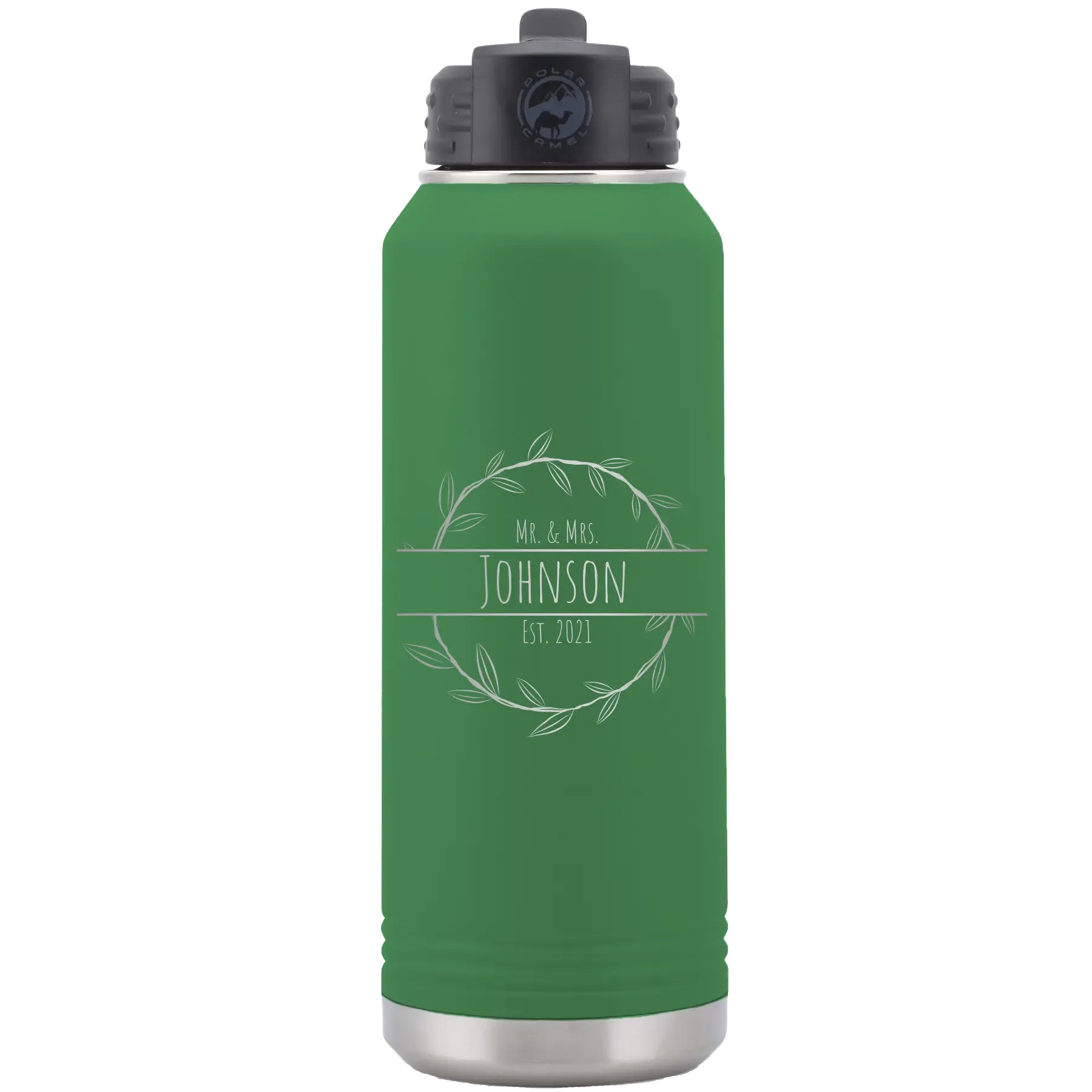 Personalized Last Name and Est 32 oz Water Bottle – Green