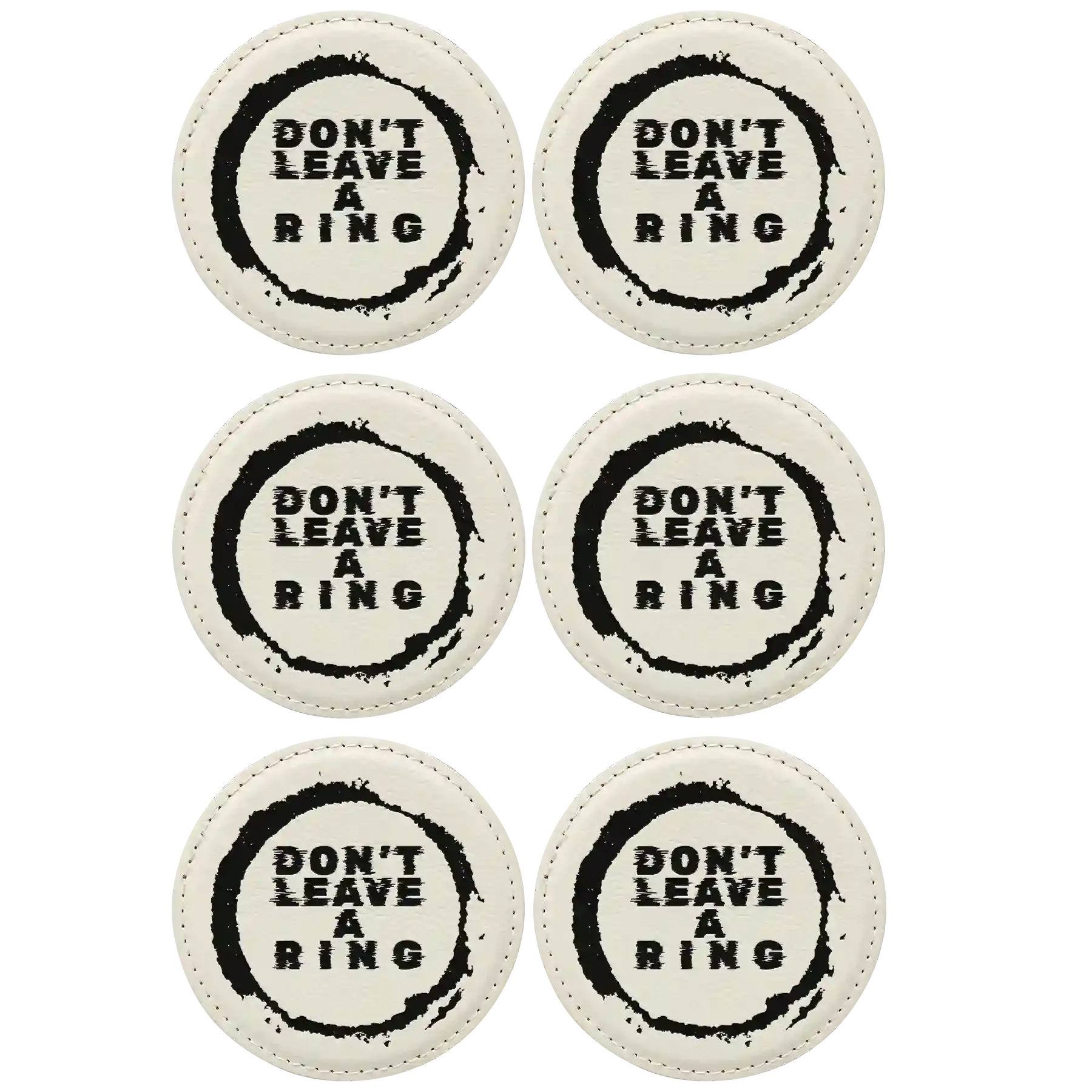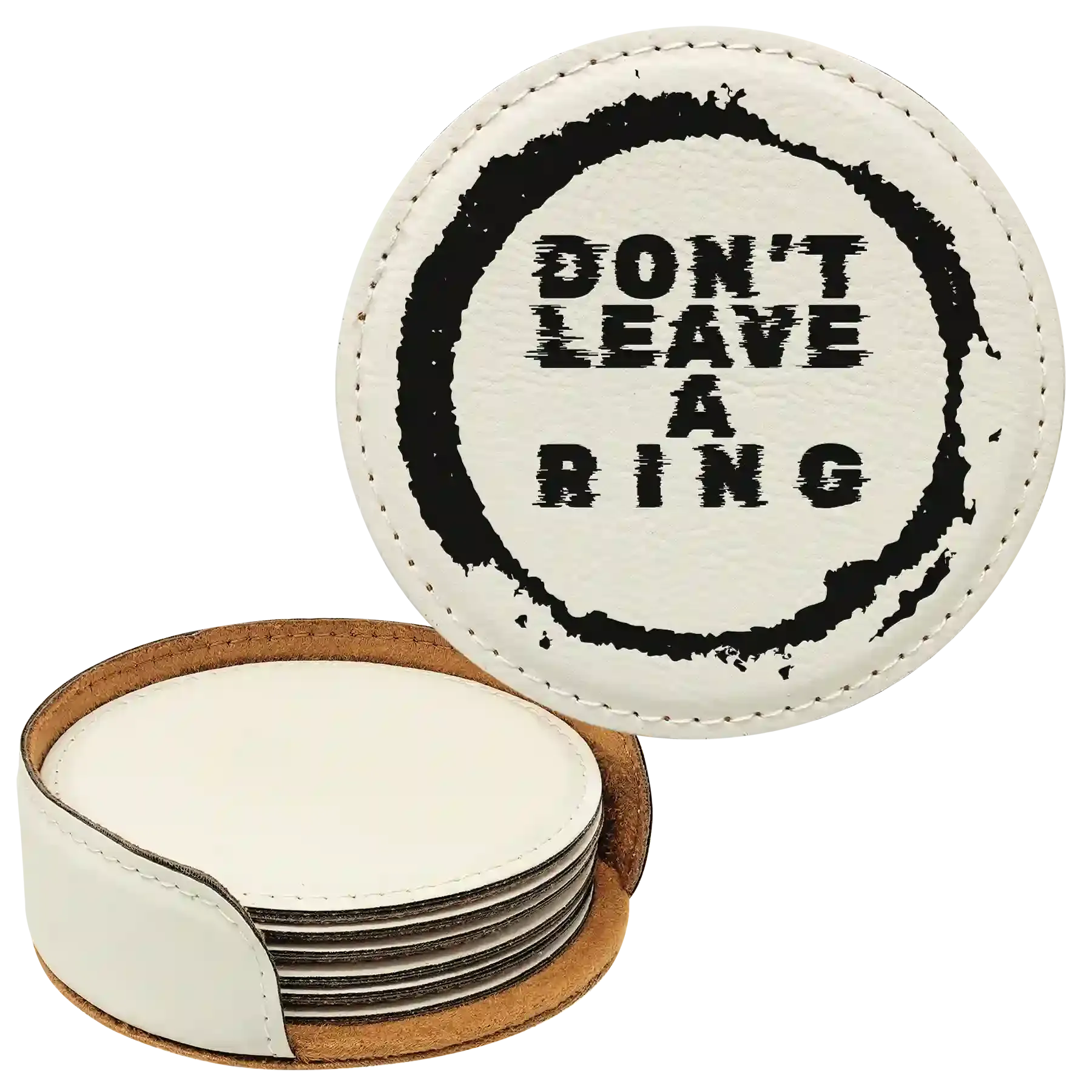 Home » Shop » Personalized Leave a Ring Round Leatherette Coasters Set of 6 – White