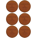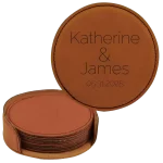 Personalized Minimal Wedding 2 Round Leatherette Coasters Set of 6 – Rawhide