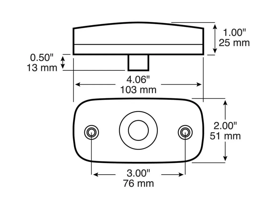 Oblong clearance or side marker lights with ABS bases and snap-on acrylic, reflective lenses. Uses a #194 bulb. 4 in.L x 2 in.W x 1 in.D. Replaces Bargman 59 Series. Priced each.