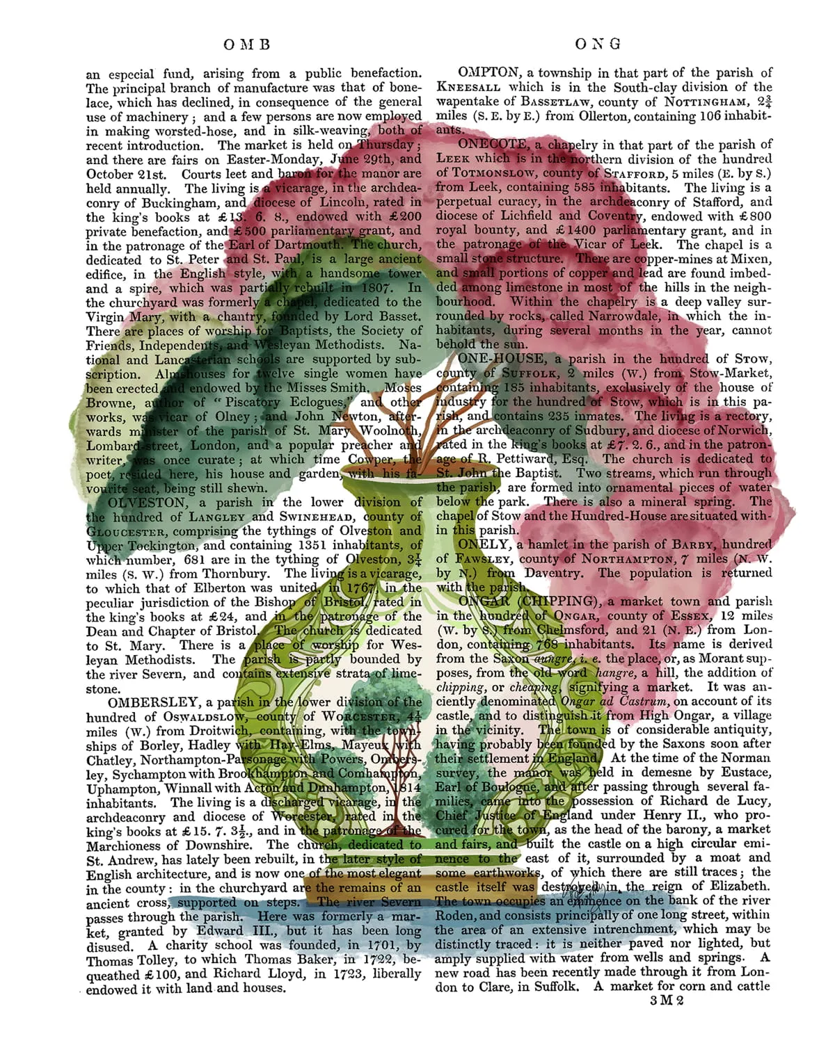 Pink Green Vase 3, Chinoiserie Book Print, Art Print, Wall art