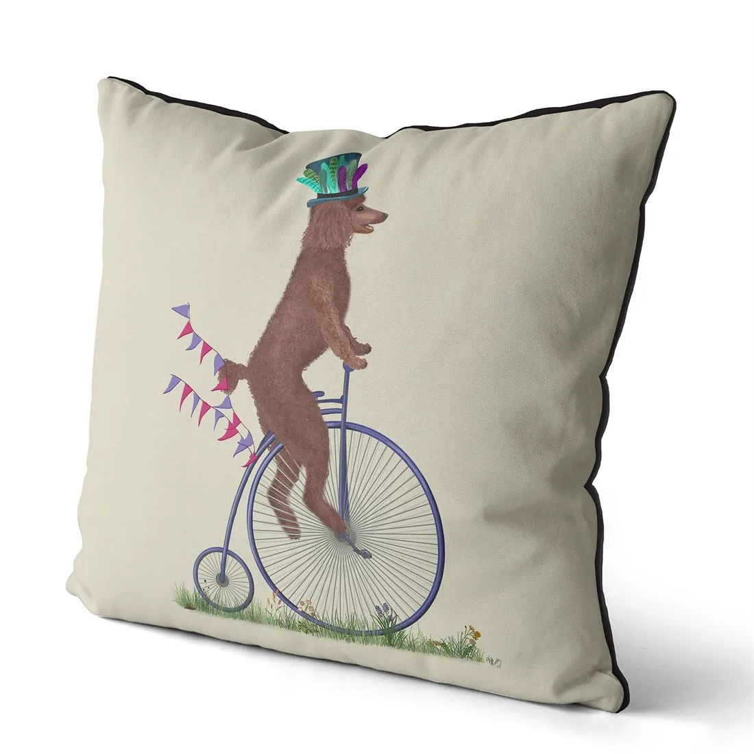 Poodle Brown on Penny Farthing, Cushion / Throw Pillow