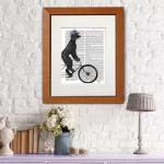 Poodle on Bicycle, Black, Book Print, Dog Art Print, Wall Art