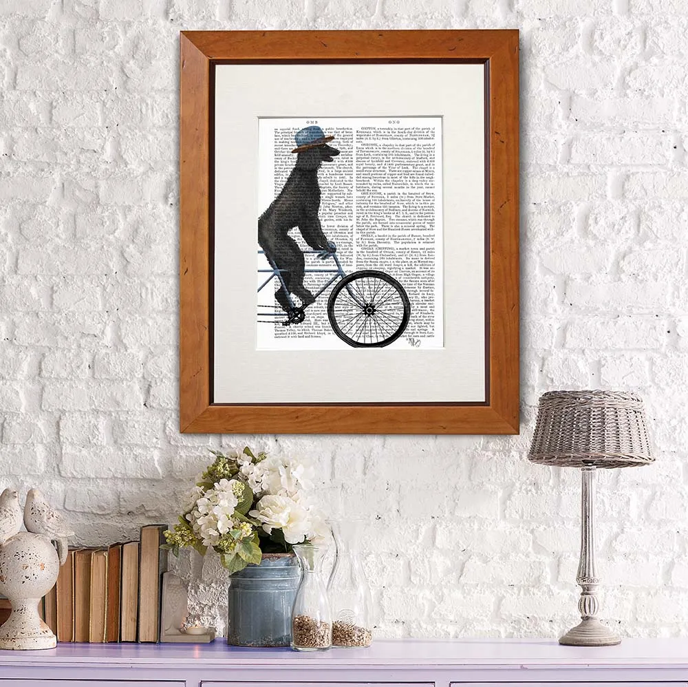 Poodle on Bicycle, Brown, Book Print, Dog Art Print, Wall Art