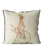 An illustration from our ‘Dogs on Penny Farthings’ Collection, this adorable cushion cover features a very cute dog riding a brightly coloured Victorian Penny Farthing Bicycle. A definite hit with dog lovers.